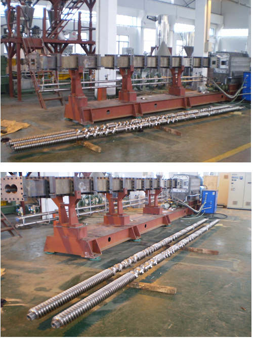 SHJ-133雙螺桿擠出機螺桿與主機。此螺桿螺紋元件均采用不銹鋼材質。
